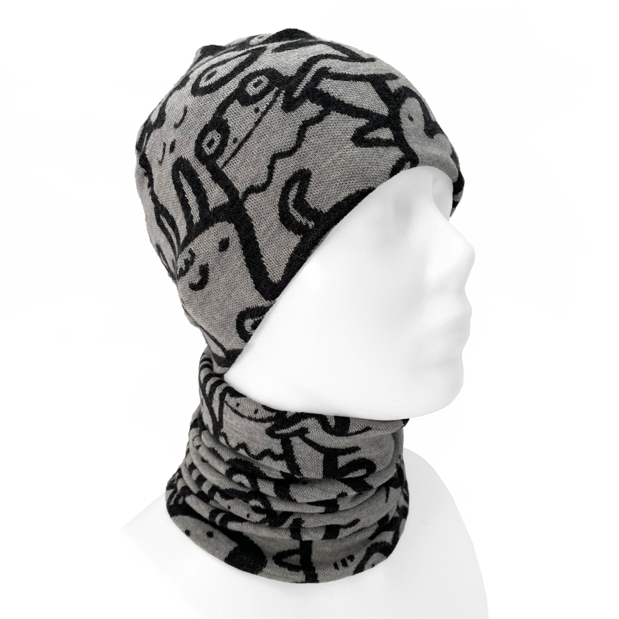 MERINO set Funny animals grey (čepice + nákrčník)